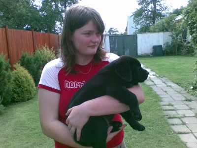 Při příchodu se na nás hned vrhla černá kulička - Aaronek (jak poznal, že k nám patří?). Chvíli jsme povídali s chovateli (manželi Vonešovými), abychom věděli co a jak.